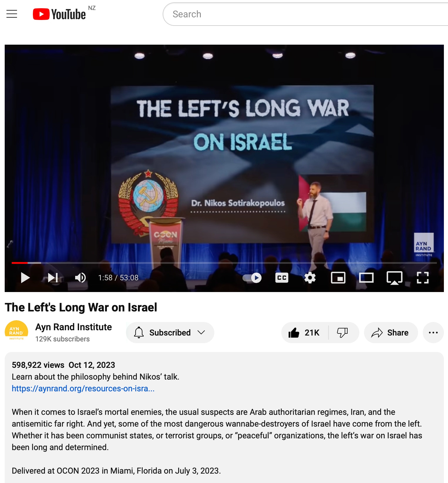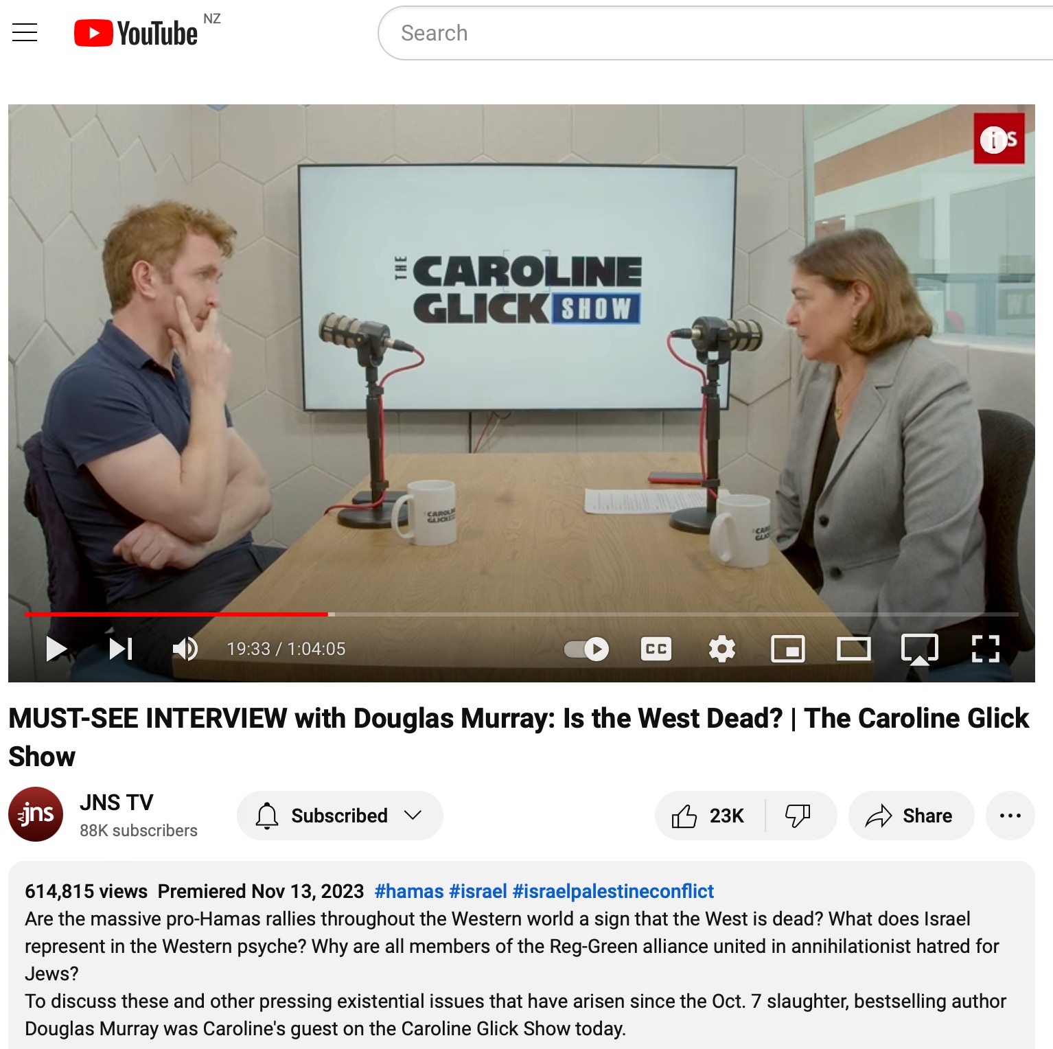 20min48sec. “If we don’t eradicate Hamas this war and this time, if we don’t eradicate them, the next Gaza war is going to be deadlier, its’s going to be much greater. If today we are complaining about 10,000 casualties …. the next war we will be talking about hundreds of thousands”