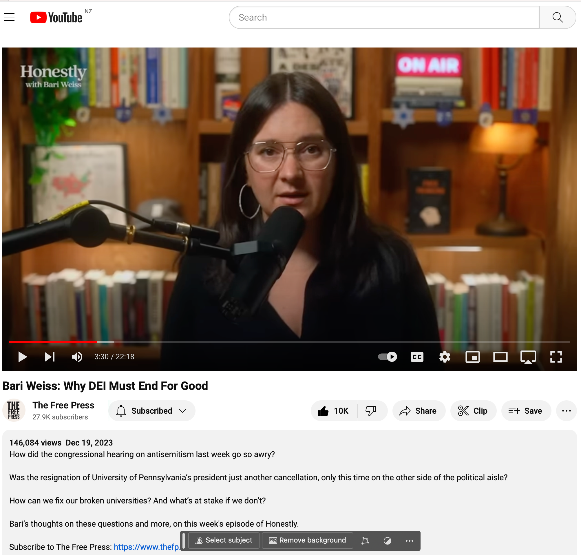 21min. Quoting Niall Ferguson: “The lesson of German history for American academia should by now be clear. In Germany, to use the legalistic language of 2023, ‘speech crossed into conduct’. The ‘final solution of the Jewish question’ began as speech - to be precise, it began as lectures and monographs and scholarly articles. It began in the songs of student fraternities. With extraordinary speed after 1933, however, it crossed into conduct: first, systematic pseudo-legal discrimination and ultimately, a program of technocratic genocide”